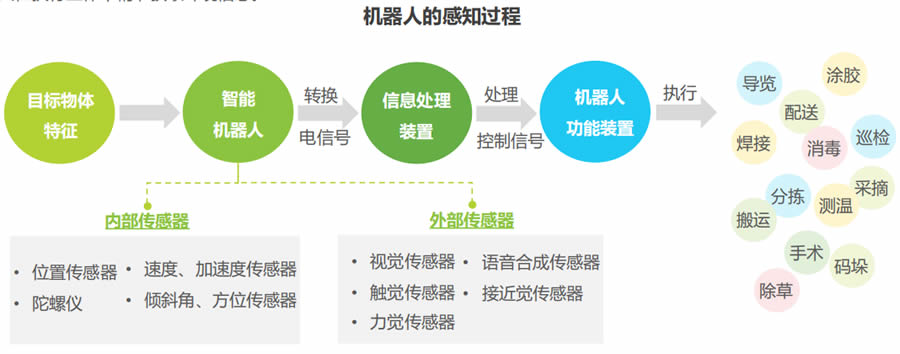 傳感器是機器人具有類(lèi)人知覺(jué)與反應能力的基礎,它起到內部反饋控制,感知并與外部環(huán)境產(chǎn)生交互的作用。依據檢測