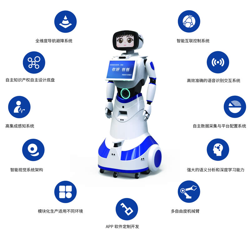 基于人工智能(Al)和機器學(xué)習(ML)技術(shù)L域的突破,經(jīng)過(guò)精細調研與充分論證,確保機器人控制智能、性能穩定,通過(guò)不斷地創(chuàng )新研發(fā),重新定義服務(wù)機器人。智能商用服務(wù)機器人"創(chuàng )創(chuàng )" 集視覺(jué)、聽(tīng)覺(jué)、觸覺(jué)、自由行走干—體。 可廠(chǎng)泛用于政符、金G、展館展廠(chǎng)工、教育、醫療、圖書(shū)館、商招、昌等L域。滿(mǎn)足客廣多元化需求。 "創(chuàng )創(chuàng )" 率先實(shí)現了把機器人的"大腦"和"小腦"完全向客戶(hù)開(kāi)放,由止此可以迅速學(xué)習各個(gè)行業(yè)的專(zhuān)業(yè)知識并成為各個(gè)行業(yè)的專(zhuān)家。"創(chuàng )創(chuàng )"是您的小助手,好朋友!