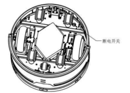 機器人底部帶有電源總開(kāi)關(guān),位于機器人后方右側萬(wàn)向輪旁邊 ,用于斷開(kāi)電池電源。出⼚時(shí)默認開(kāi)啟。當機器存在時(shí)間(超過(guò)一個(gè)月) 不使時(shí), 需要將電源總開(kāi)關(guān)撥動(dòng)至關(guān)閉狀態(tài),避免長(cháng)時(shí)間不使而導致電池電量虧損狀態(tài),再次使用時(shí)需要手動(dòng)將開(kāi)關(guān)撥動(dòng)至打開(kāi)狀態(tài)。