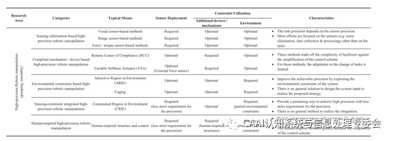 在G精度的抓取和裝配工作中,僅僅依靠機械手本身的精度不能滿(mǎn)足任務(wù)要求。近期在IEEE TRANSACTIONS ON MECHATRONICS 上發(fā)表的一篇名為《A Survey of Methods and Strategies for High-Precision RoboticGrasping and Assembly Tasks—Some New Trends》的文章對近年來(lái)在機器人G精度抓取和裝配方面的研究工作進(jìn)行了分類(lèi)、回顧和比較,并闡述了該L域的研究趨勢。