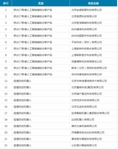 附件:在科技支撐抗擊新G肺炎疫情中表現突出的人工智能企業(yè)名單