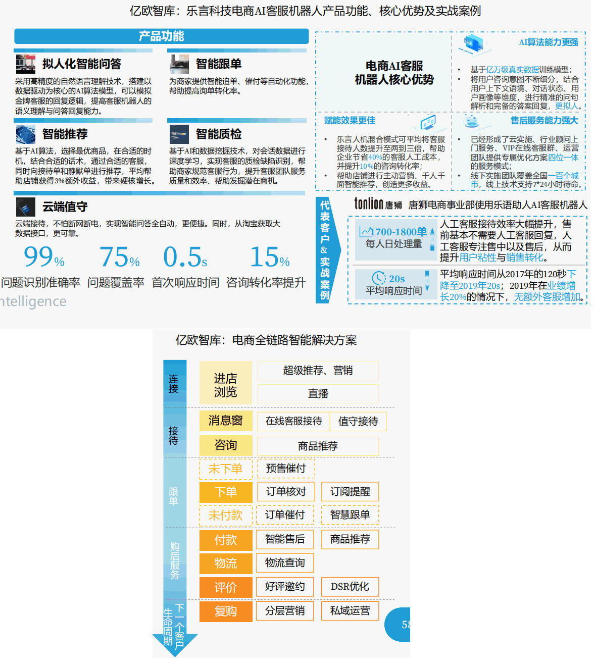 在電商L域,樂(lè )言科技自主研發(fā)了面向淘寶、天貓等平臺的AI客服機器人“樂(lè )語(yǔ)助人” ,具備G準確的語(yǔ)言理解能力,可模擬金牌客