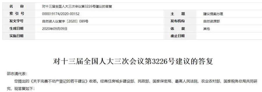 此外,答復就“關(guān)于不動(dòng)產(chǎn)共有登記”等問(wèn)題也做了明確回復。答復指出,不動(dòng)產(chǎn)登記機構以少數份額共有人不配合而不予辦理登記的問(wèn)題,屬于執行層面的問(wèn)題,將加強監督指導,嚴格落實(shí)法律規定,切實(shí)維護不動(dòng)產(chǎn)權利人合法權益。