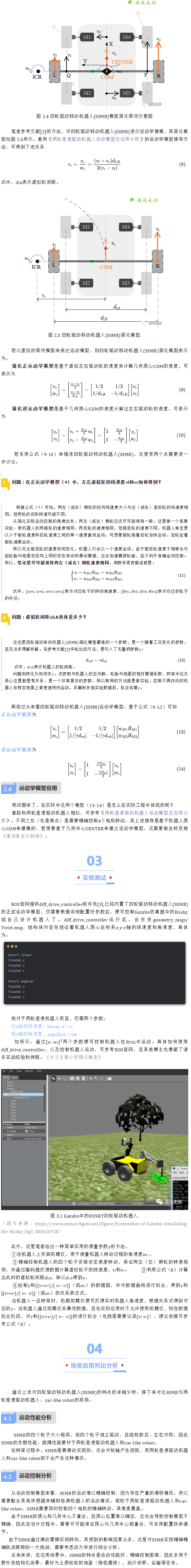 假如沒(méi)有旋轉運動(dòng)(無(wú)滑移),意味著(zhù)只有vl和vr,且vf和vb均為0,此時(shí)LR=QP;而如果存在旋轉運動(dòng),也就是vf和vb不為0,存在滑移現象,則實(shí)際情況發(fā)生了變化,也就是說(shuō)按照vl和vr及PQ計算出來(lái)的角速度,并不是真實(shí)的角速度,而旋轉分運動(dòng)不同,滑移(滑動(dòng)摩擦)程度不同,對實(shí)際的角速度影響也不同,因此虛擬輪間距LR是動(dòng)態(tài)變化的,與滑動(dòng)摩擦相關(guān),因此不同摩擦系數的地面與輪胎接觸,對實(shí)際旋轉運動(dòng)也是有著(zhù)不同影響的。