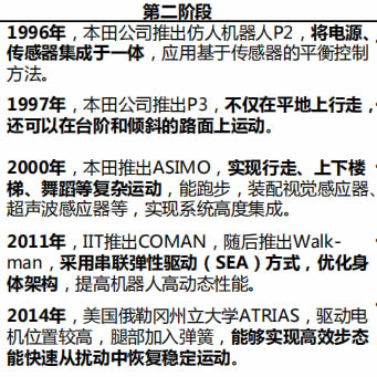 • D二階段:以本田仿人機器人為代表的系統G度集成發(fā)展階段;