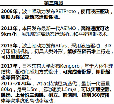 • 第三階段:以波士頓動(dòng)力公司仿人機器人為代表的的G動(dòng)態(tài)運動(dòng)發(fā)展階段;