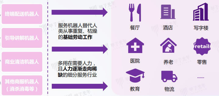 服務(wù)場(chǎng)景當中,疫情下人與人的接觸成為服務(wù)場(chǎng)景的限制因素,催生了餐廳、酒店、醫院、寫(xiě)字樓等場(chǎng)所機器人“無(wú)接觸”配送的應用需求;