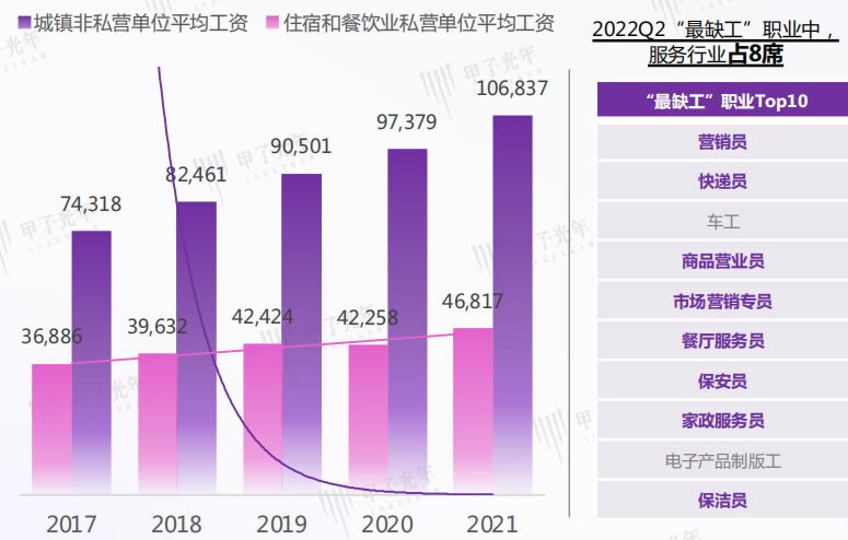 新G疫情大流行,造成勞動(dòng)力整體流動(dòng)性下降,勞動(dòng)人口與崗位錯配,同時(shí)受限于整體工資水平低下,服務(wù)業(yè)勞動(dòng)力短缺問(wèn)題愈發(fā)嚴重;