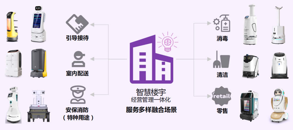 在城市生活數智化水平不斷提升的大背景下,服務(wù)機器人將是服務(wù)業(yè)場(chǎng)景中物理世界與數字空間的接口;機器人將與場(chǎng)景本身及其他設備形成互聯(lián)互通,實(shí)現一體化智慧場(chǎng)景,全方位提升經(jīng)營(yíng)和管理能效;