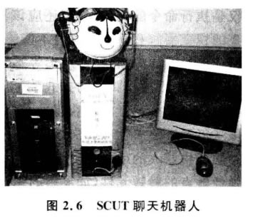 近年來(lái),SCUT “智能計算機”科研團隊也對 聊天機器人展開(kāi)了研究,如圖2.6所示。他們開(kāi) 發(fā)的SCUT 聊天機器人包括攝像頭及驅動(dòng)模塊、 語(yǔ)音拾取模塊、語(yǔ)音識別模塊、知識查詢(xún)模塊、語(yǔ) 音生成模塊;攝像頭捕獲人臉圖像,語(yǔ)音信號經(jīng) 由語(yǔ)音拾取模塊和語(yǔ)音識別模塊后識別出語(yǔ)義,聊天機器人根據用戶(hù)的語(yǔ)音來(lái)了解用戶(hù)的需求,