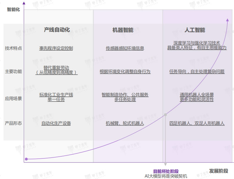 憑借機器視覺(jué),自然語(yǔ)言理解等人工智能技術(shù)的發(fā)展,初代“AI+”機器人產(chǎn)品逐步成熟,生成式AI的爆發(fā)與通用人工智能的曙光