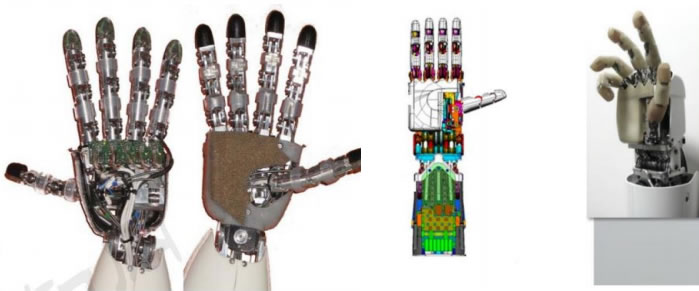 意大利 iCub 靈巧手有 20 個(gè)活動(dòng)關(guān)節、9 個(gè)自由度。9 個(gè)電機只有 2 個(gè)集成在手掌內, 另外 7 個(gè)集成在前臂里。